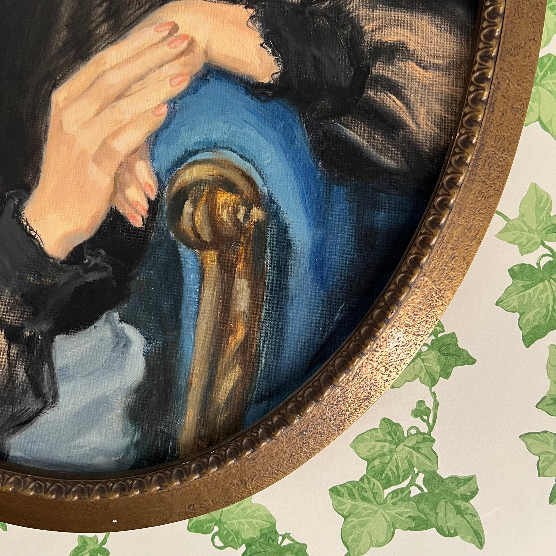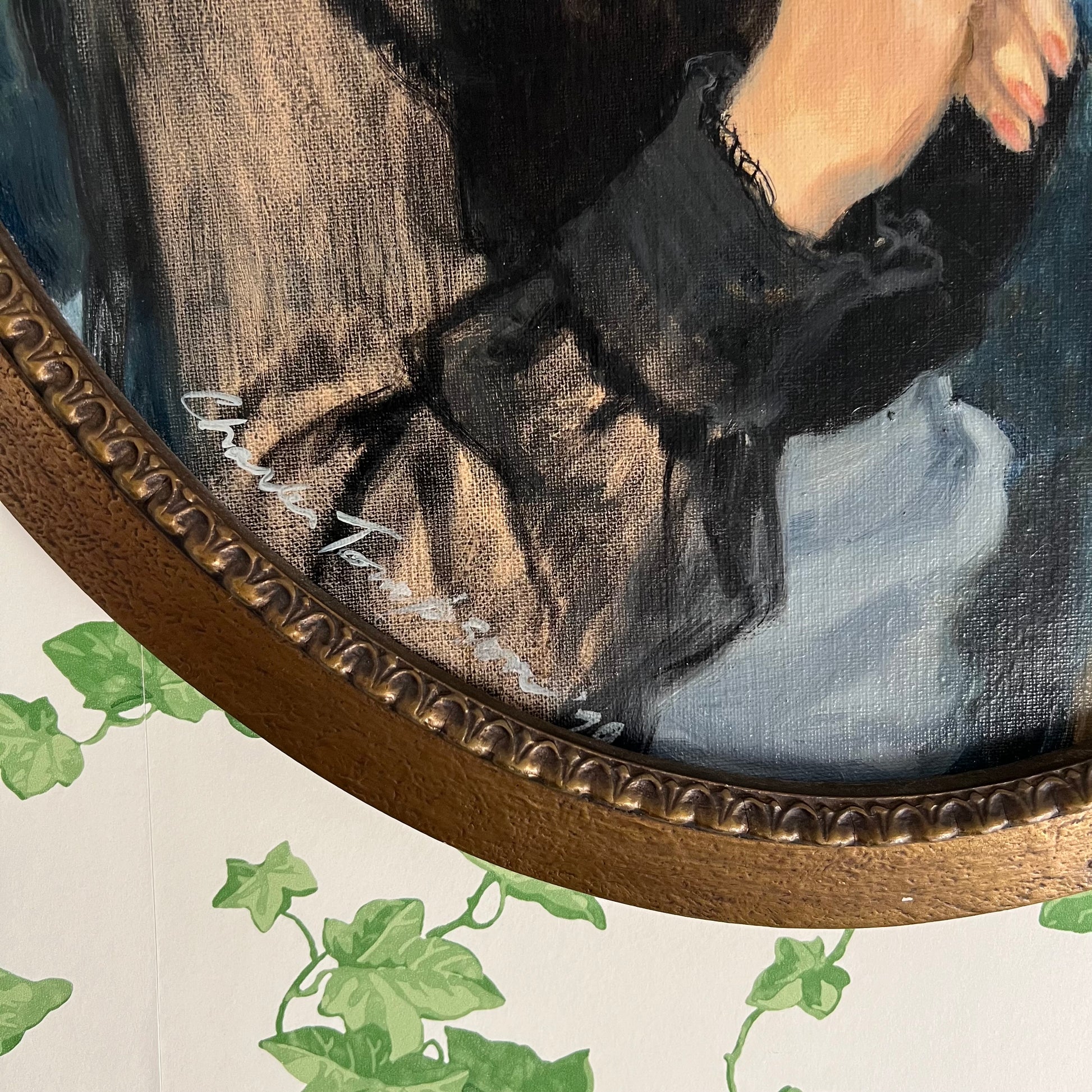 Vintage Oil Painting Portrait Retro Glam Blonde Woman 1970
